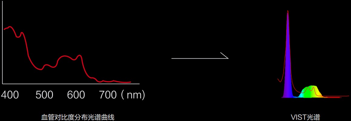 • 蓝紫光 LED 中心波长位于血红蛋白最大吸收峰,凸显血管对比度,有助病灶识别和诊断
